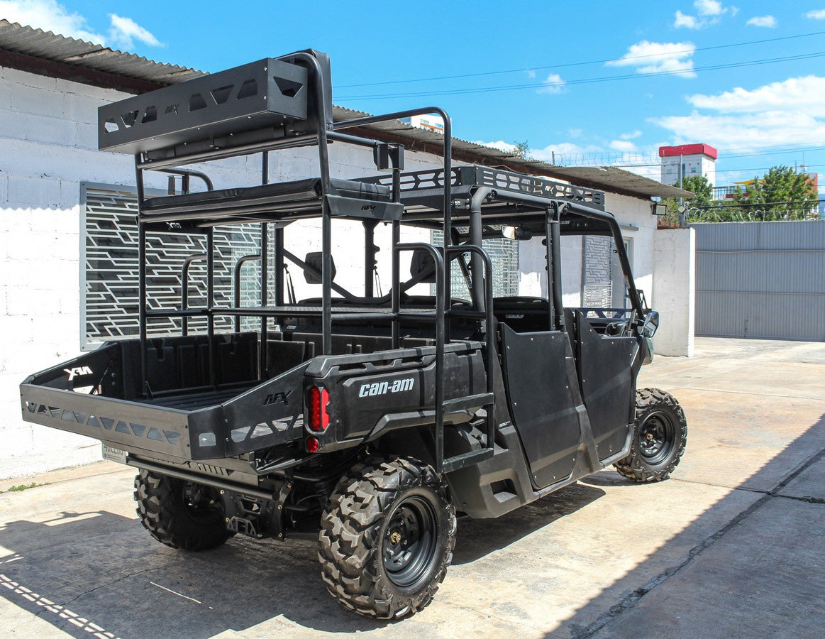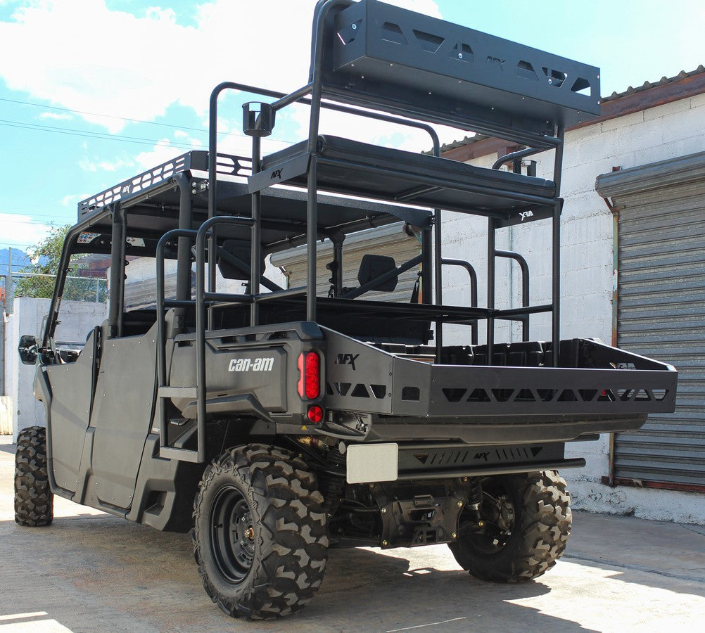 Lleva tu CFMoto UForce al siguiente nivel con la Banca Alta RaceX, diseñada para un ajuste preciso y un uso real en campo. Su sistema Quick-Connect se fija de forma firme en la caja, ofreciendo una plataforma amplia para moverte con comodidad y seguridad.