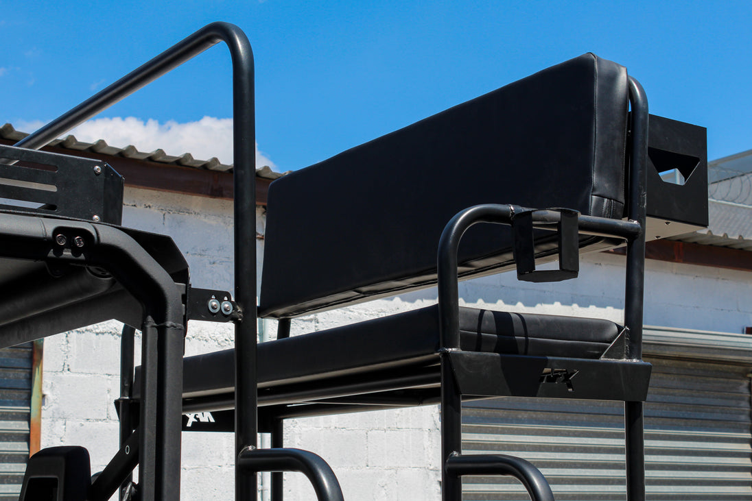 Lleva tu Polaris Ranger Mid-Size al siguiente nivel con la Banca Alta RaceX, diseñada para un ajuste preciso y un uso real en campo. Su sistema Quick-Connect se fija de forma firme en la caja, ofreciendo una plataforma amplia para moverte con comodidad y seguridad.