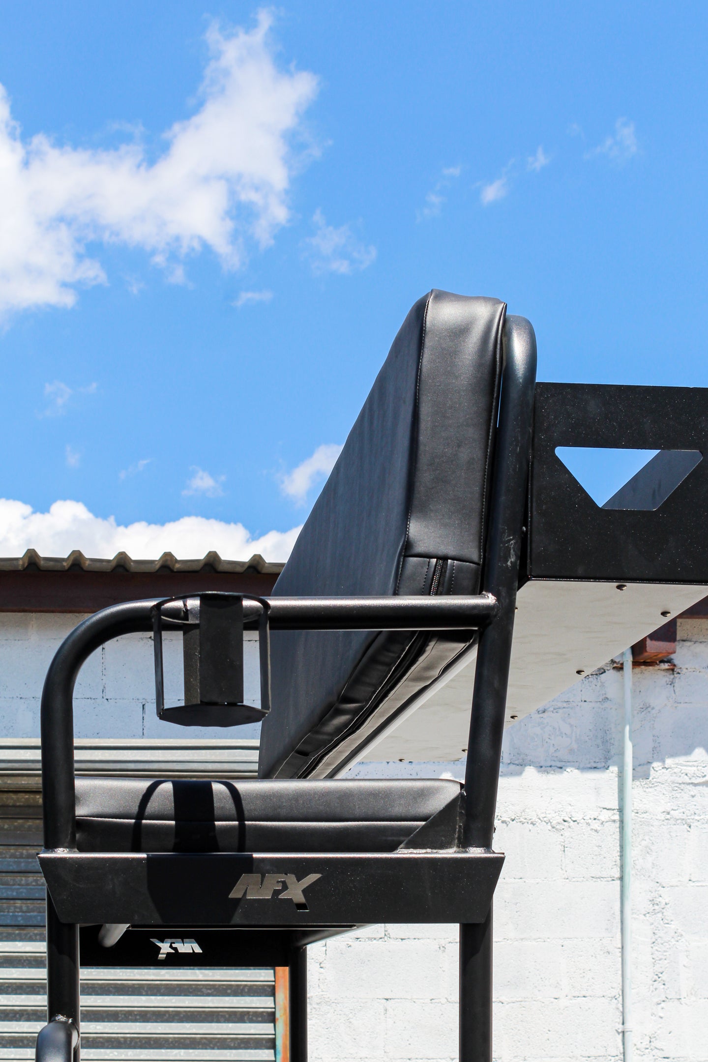 Fabricada en estructura metálica y con acabado en pintura en polvo de alta resistencia, esta banca está hecha para aguantar el uso rudo. Incluye una plataforma completa (de lado a lado) con corte láser y doblez CNC para facilitar el movimiento y permitirte pararte con mayor estabilidad. Los cojines están pensados para exterior: tela tipo sail cloth grado automotriz, resistente a rayos UV y al agua, montada sobre espuma grado marino de firmeza media para mejor soporte.